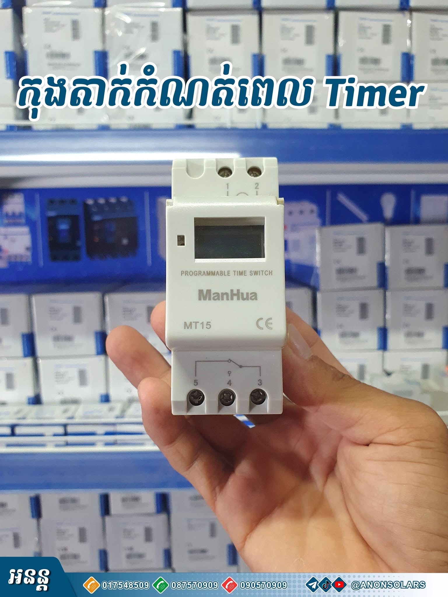 កុងតាក់កំណត់ពេលវេលា Digital Timer Relay មាន3ប្រភេទ -ប្រើសម្រាប់ភ្លើងរដ្ឋ -ប្រើភ្លើងអាគុយ -និងប្រើជាមួយសូឡា ⚙️ អាចកំណត់បិទបើកបាន 16ដង/មួយថ្ងៃ ⚙️ ទំហំ 16A NO/NC/COM 📞085-885-625