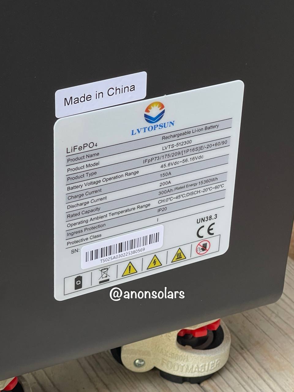 អាគុយលីស្យូម 15.36kWh, 51.2V, 300Ah LifePO4 Battery (LVTS-512300)