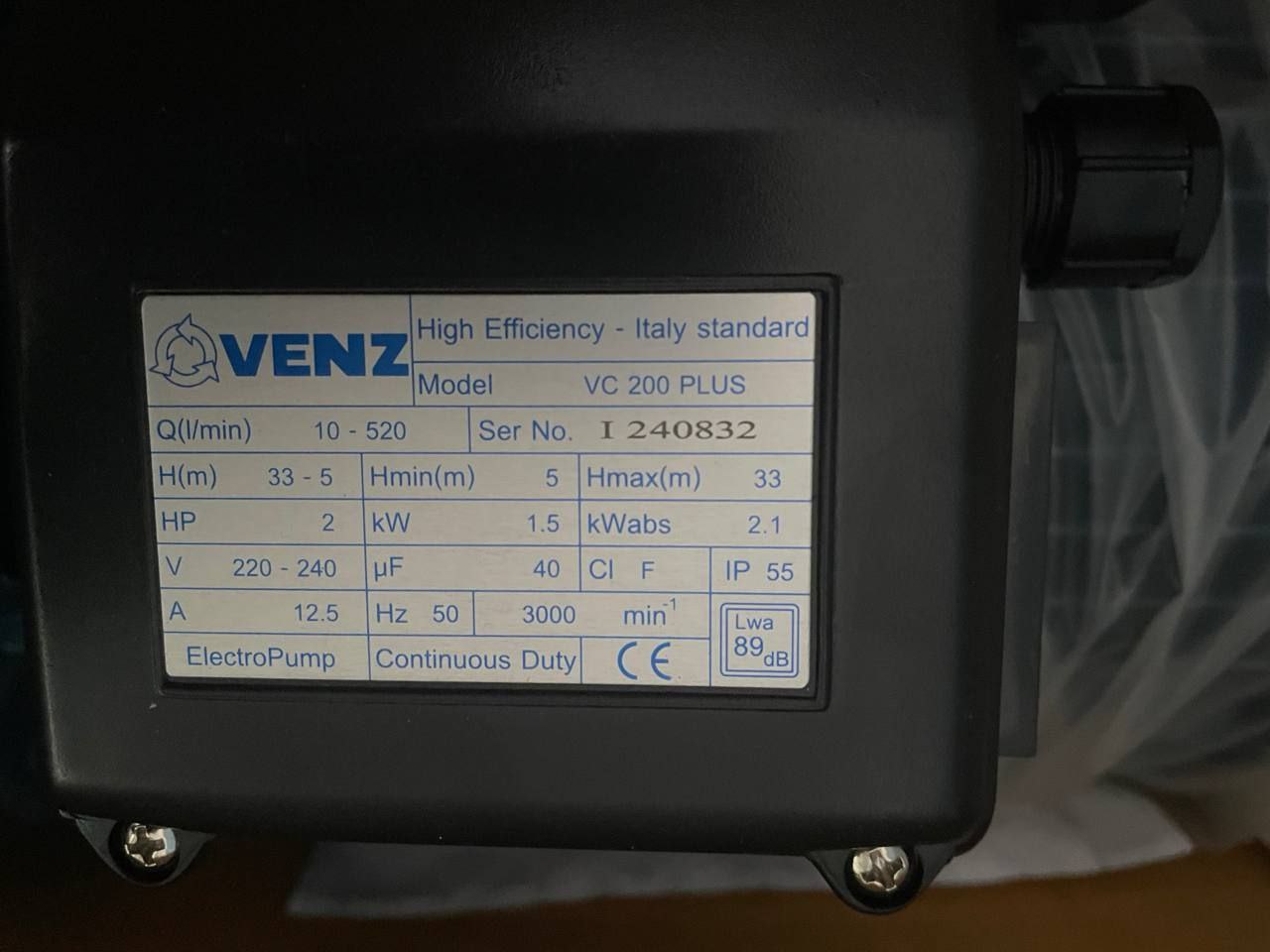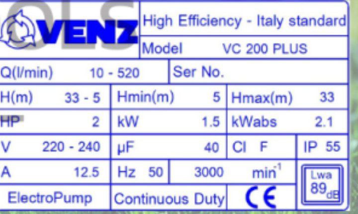 ម៉ូទ័រលើគោកAC220V 2hp (1.5kW) VENZ, Italy Standard(VC-200 PLUS)